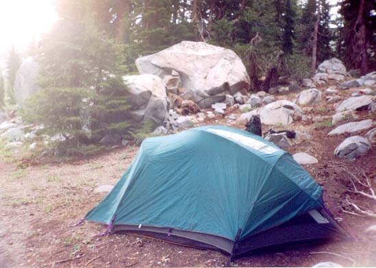 After eating a couple PowerBars just for some energy, we packed up and headed down the trail, figuring we'd stop to eat when we got to Frog Lake (a few miles away), since we were pretty much out of water.