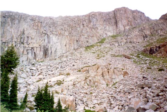 After the filtering ritual was done, we continued down the trail. The problem was, "down" literally meant "down". I was a bit annoyed that we were dropping in elevation when I knew in a short distance we'd have to start the climb back up over Elephant's Back. As we dropped, we saw some cool rocks on the side of the mountain: