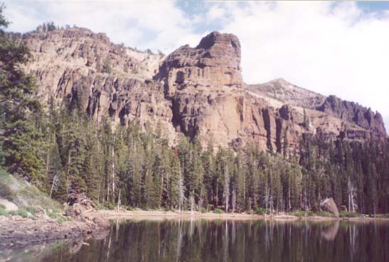 ...and started walking around the lake. The most interesting thing about the scenery was all the strange rock formations. For example, to the East: