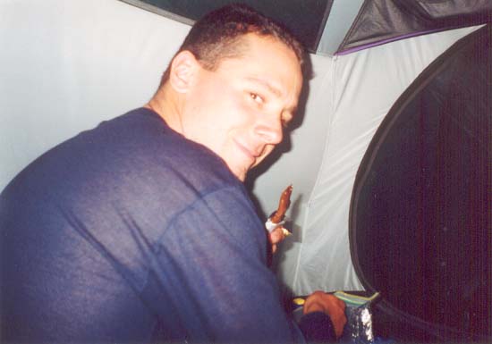 After attempting to bathe somewhat in the cold water, we sat around camp for a while checking out the scenery, and it was then that Justin began to whittle. What he was whittling, he wasn't sure, but a small piece of driftwood suddenly had a new purpose in life...to become something and dull Justin's knife. After a while, we couldn't take the mosquitoes anymore and retreated to the tent while it was still early, without dinner. We feasted on a dinner of (yum, yum!) Powerbars.