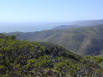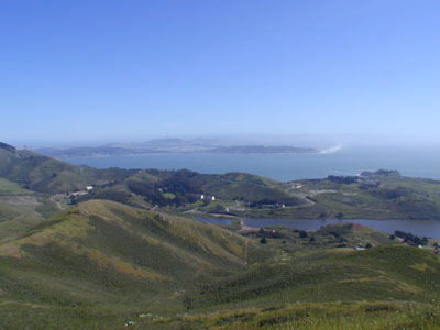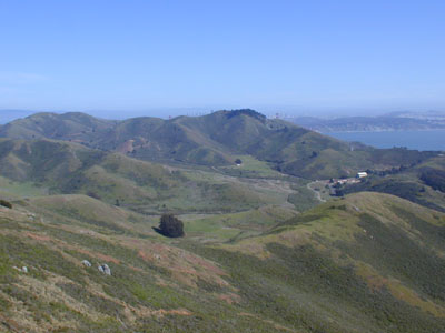 ![]() Looking NorthWest from the top of Hill 88. If you squint, you can see the Coastal Trail heading up the mountain in the middle of the picture, out of Tennessee Valley, and back toward Muir Beach |