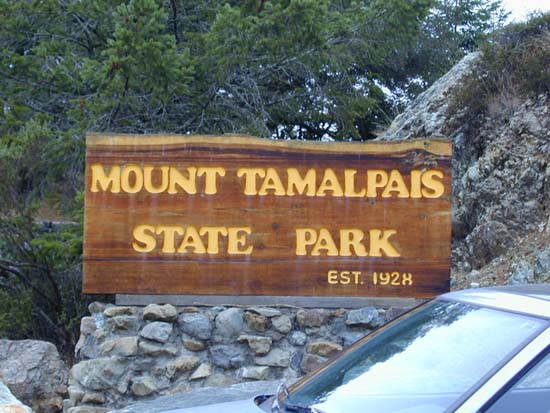 ![]() Once again leaving Pantoll Ranger Station (where most of the trails intersect, as well as the main roads) from Easy Grade trail, you catch sight of the main sign for the park (this road splits to the East Peak and Mountain Theatre). |